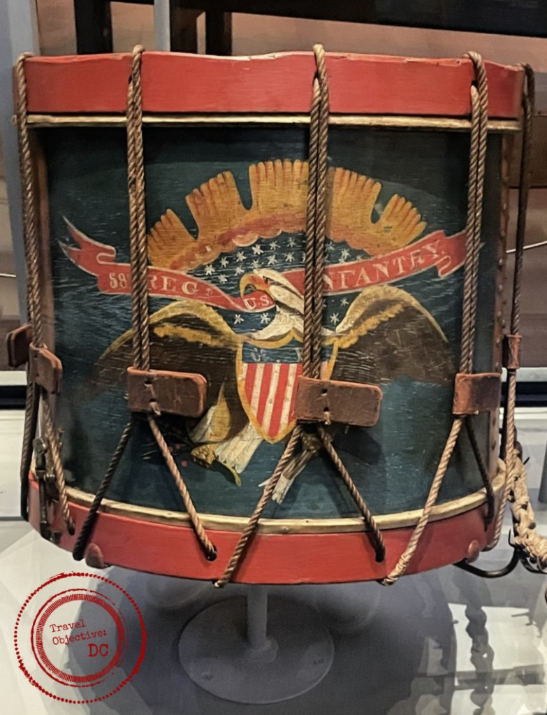 A Civil War-era snare drum used to keep cadence as soldiers marched and relay commands.