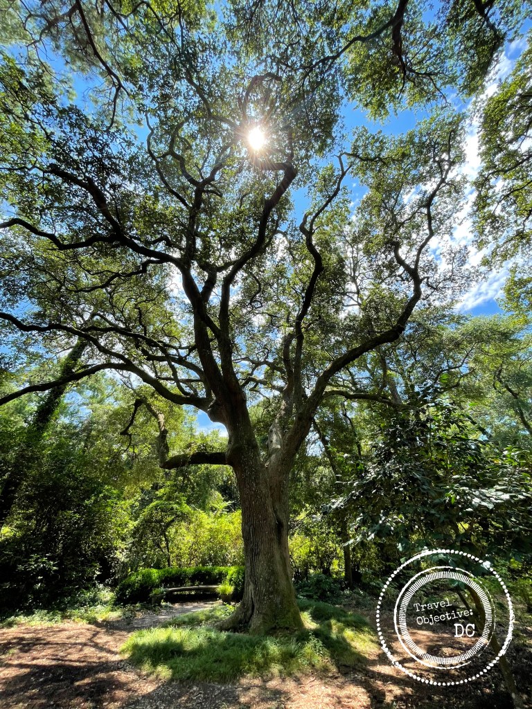An ancient oak tree in the Elizabethan Gardens which grew during the times of the “Lost Colony”.