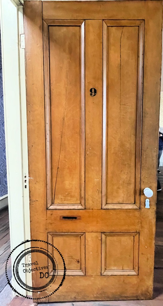 The original door to Room 9 of the Missing Soldiers Office. Note the mail slot on the lower left, cut into the door by Clara Barton.